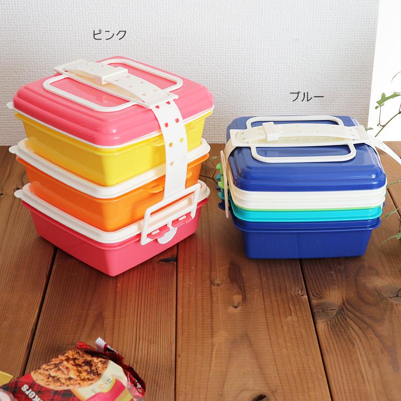 ピクニックランチボックス お弁当箱 レジャーランチボックス 3段 取り皿付き カラフル お重 運動会 行楽 4904776569234 お弁当グッズのカラフルボックス 通販 Yahoo ショッピング